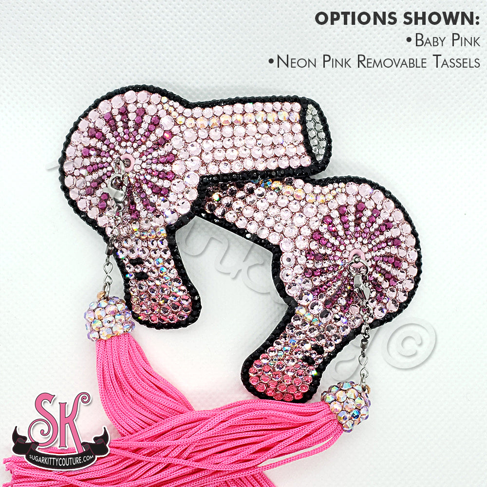 You'll be selecting the main rhinestone color. I will use coordinating rhinestones of my choosing for the details, unless otherwise specified.
